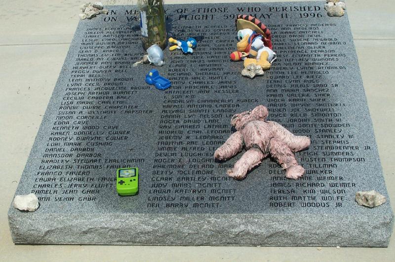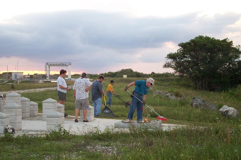 Flight 592 Memorial Cleanup On Saturday, September 21, 2001, a number of the active hams in Miami-Dade got together to do something really unrelated to ham radio or communication. Through the e-mail list, we came up with a plan to clean up the memorial for Flight 592. This is located about 11 miles East of Krome Ave on US41. See the pictures of the site before we started here. To learn more about the tragic Flight 592: Welcome to the Flight 592 Memorial Location of the site: 25 45.70N 080 40.30W Many of us have memories of working this disaster. Unfortunately there really wasn't much that we could do, other than provide communication support for the police officers and firefighters involved in the recovery. As you might remember, recovery went on for weeks. With all the loss of life in New York and Washington DC, we thought it would be nice to remember those who passed away here in Miami. Participating in the clean up project: Kevin K4PCS, Jason KE4KYY, Virg K4VSC, Ray KD4BBM, Jason N3PRZ, John KF4ACN, Matt KG4LGO, Wendy KG4OXT, Daniel KG4LYE, and Roger Swift, Jason KE4KYY's Dad. 40 Man-hours went into the cleaning of this memorial. All photos by Kevin, K4PCS The memorial. People who visit this site often leave something behind for their loved ones. Of course, we didn't touch this.