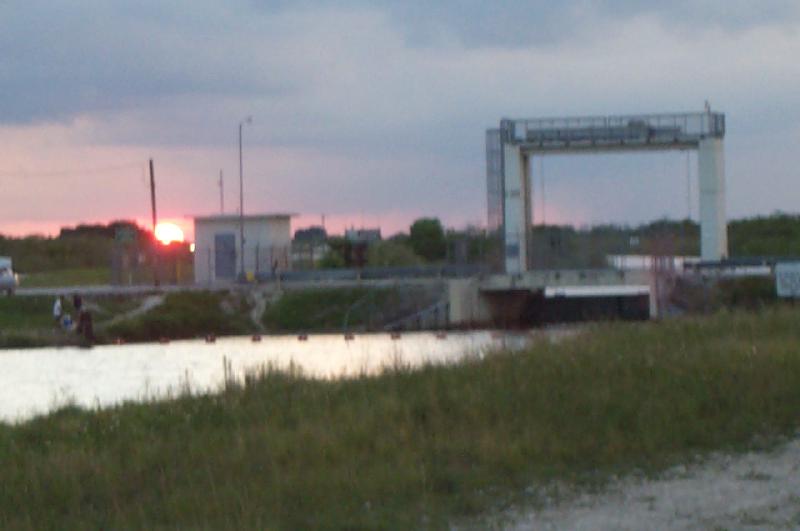 A beautiful sunset over the Everglades. Above this, we were getting a nice light show of cloud to cloud lightning. The scheduled start time of 1600 for this project worked out perfectly. The sun wasn't too oppressive, and the bugs weren't out yet. We ran out of light at the same time we ran out work to do.