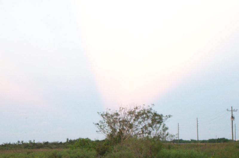 An unusual optic illusion. These beams of light look like they're coming from the East. But they're actually the beams coming from the sunset, converging in the distance. A beautiful phenomenon.