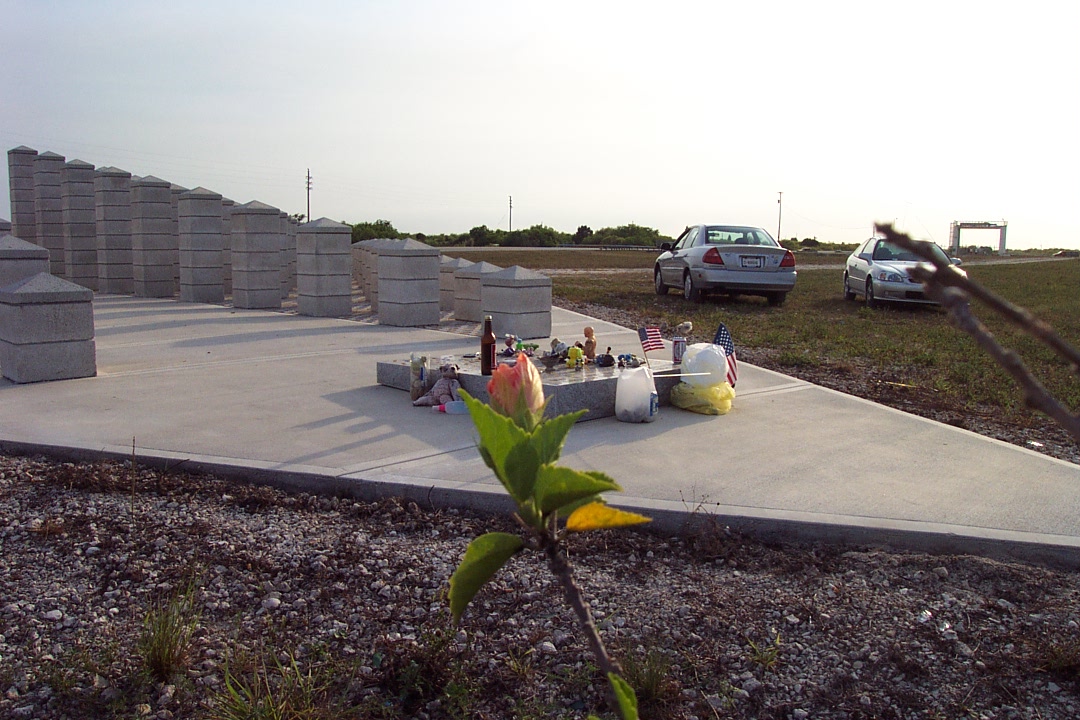 Here are some pictures from the Memorial, May 05, 2002. Just a bit of touchup and sweeping to get ready for the sixth anniversary of the tragic loss, May 11th. Participating in today's clean-up: Jeff Garnett KG4CNM, Matt Ginn KG4LGO, Jorge Arias KG4QLE, Alex Hernandez De Carvalho EB8CIC/W4, Ray Vaughan, KD4BBM. Photos by Jeff, KG4CNM.