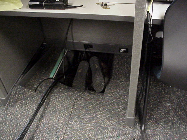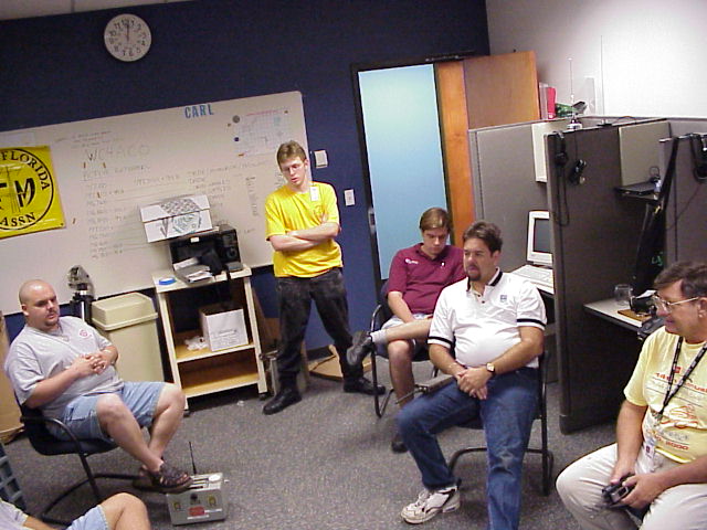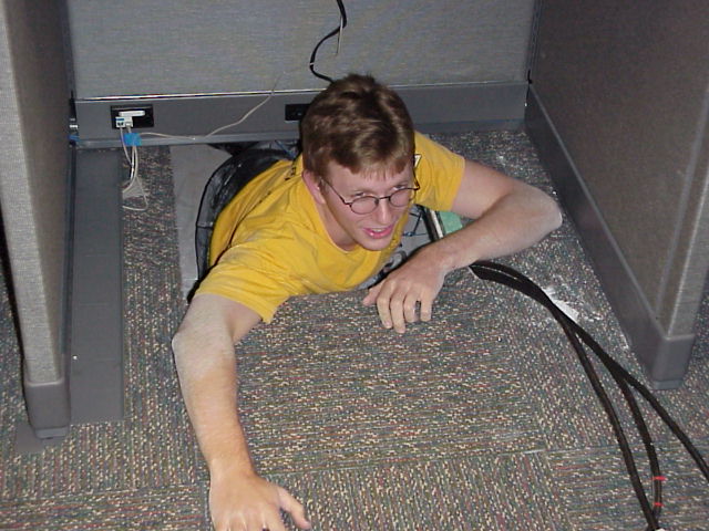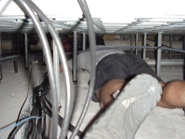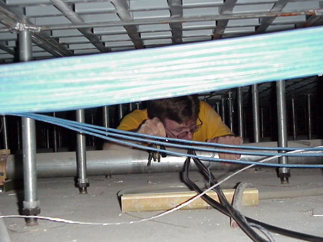 On November 4, 2000, a few of us got together to pull some coax into the new Radio Room at the new EOC. Some of the guys REALLY get into their work.
