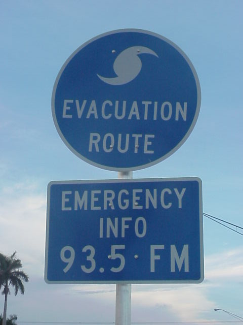 Evacuation Plans These shots are the front and back of Evacuation signs in Florida City. They direct people to a 27 watt radio station 16 miles away, North of Key Largo on County road 905. The sign SHOULD be directing people to a Miami area station. 07/15/2003