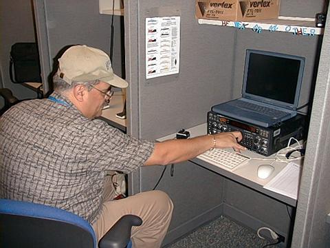 meatballs for lunch. There was also a table with cakes and cookies, soft drinks JASON KE4KYY had a class going on emergency communications with about fifteen participating. We also had a group of eight amateurs who were being instructed on how to build quarter wave ground plane emergency antennas. We also had a couple of the news media present, (Miami Herald) one a photographer, who took pictures in the EOC and the radio room, and the other one was a reporter, Lila Arzua, who interviewed a few of the members who were in the radio room. A number of the membership FM ASSN and DADE ARC were going to spend the night at the EOC and communicate. I guess there will be a little partying going on during the night. Some of the scuttlebutt that I heard was that CASTRO died, but unfortunately was not true, and the second bit was that a merger of the FM Assn and the DADE radio may take place. This was a very successful field day complete with all modes of communication, but minus the heat, water and bugs.