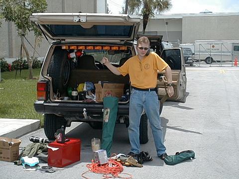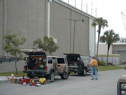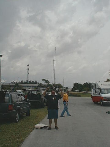 On June 23 and 24, 2001, the Dade Radio Club and the South Florida FM Association got together to put on Field Day 2001. The event was held at the brand new Miami-Dade Emergency Operations Center. Hot off the cameras... pictures from a very successful Field Day Operation. While it may have rained a lot, we had a good shake-down event for the new radio room, we got to educate members of the public and CERT teams. And we ate like kings for two days. The press coverage was great with a Sunday article about the event. Click here to see the Miami Herald story from Julio, WD4JR To see the generators that were providing power to the operation, click here. Also, for a full tour of the new EOC, check this link.