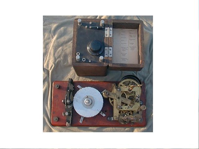 This is a pic of an early Morse code training setup. The way this thing works is you turn the big brass key on top of the