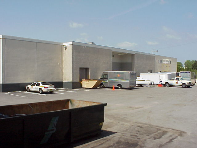 At the rear of the Fire HQ and EOC is another large building that contains all the equipment that keeps the operation running. Here are some pictures taken during Field Day 2001. I'll try to describe them the best I can. Here's the front of the Utility building as viewed from above the EOC.