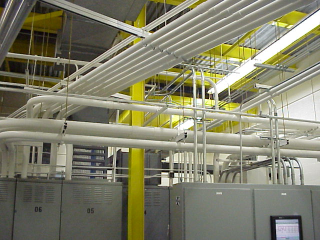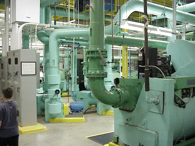 Chiller Plant. This is where cold water is made to run the air conditioning in the building. There are four large chiller. Any of of them can cool the whole building.