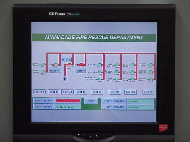 A close up of the touch screen control system. it shows graphically the flow of power from the two FPL feeds and the two generators. It's basically a remote control for the huge relays elsewhere in the building.